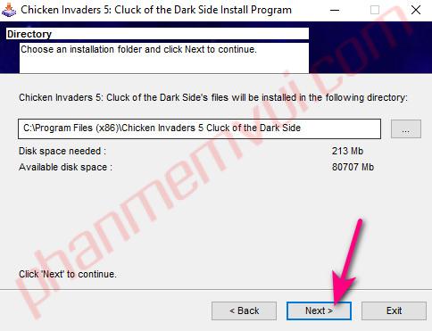 Chạy file Chicken Invaders 5 Click of the Dark Side để mở trình cài đặt